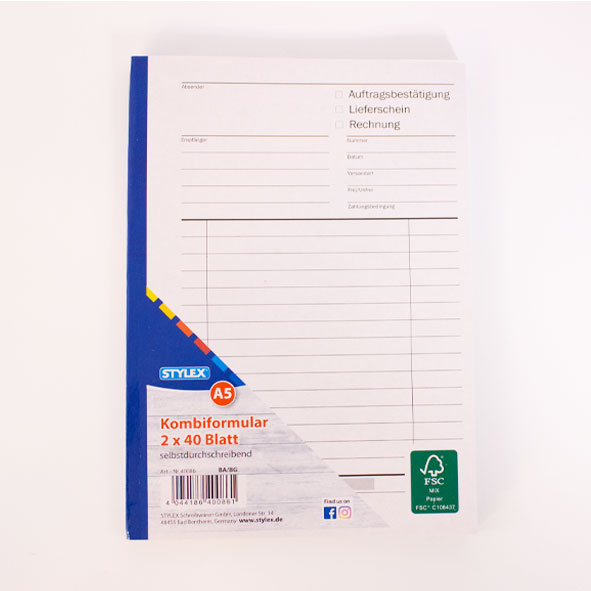 DIN A5, 2 x 40 Blatt selbstdurchschreibend (Lieferschein, Rechnung, Auftragsbestätigung) 2-fach gelocht