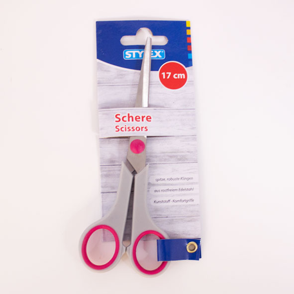 spitz, 17 cm lang Schere mit robusten Klingen aus rostfreiem Edelstahl mit Kunststoff-Komfortgriffen farbig sortiert