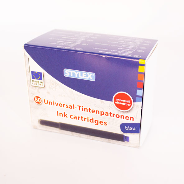 Universal-Tintenpatronen geeignet für alle handelsüblichen Füllhalter und Tintenroller einseitig mit Kugelverschluss